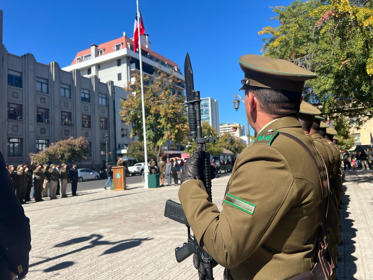 - En la Plaza de Armas de Talca, y encabezado por el delegado presidencial regional, Humberto Aqueveque Díaz; la gobernadora regional, Cristina Bravo, y la jefa de la Zona de Carabineros Maule, general Maureen Espinoza, la institución dio inicio a la conmemoración de sus 97° años de vida.