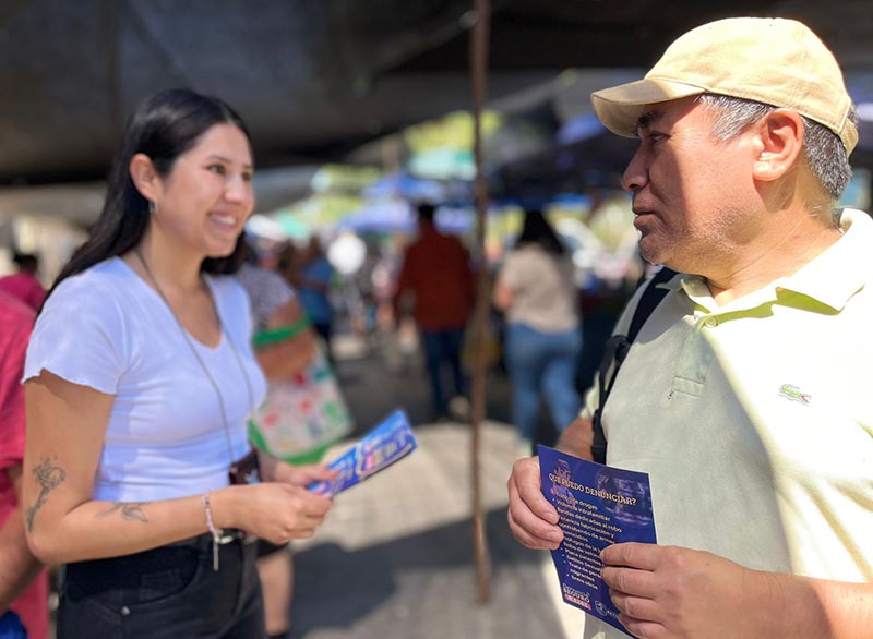 La actividad se realizó en feria libre de Retiro, donde se entregaron volantes informativos y se brindó orientación a los vecinos sobre el uso del número gratuito *4242, una línea que permite realizar denuncias de manera completamente anónima. Esta herramienta está diseñada para que los ciudadanos puedan reportar delitos como violencia intrafamiliar, tráfico de drogas, robo de vehículos, presencia de bandas criminales, delitos sexuales, trata de personas, contrabando y tenencia de armas, entre otros.